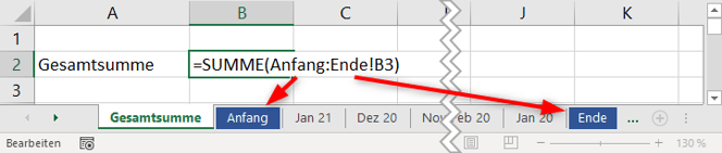 SUMME(Anfang:Ende!B3).