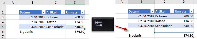 Mit dieser Taste erstellt man am schnellsten eine neue Zeile in einer Tabelle, auch wenn sie eine Ergebniszeile hat.